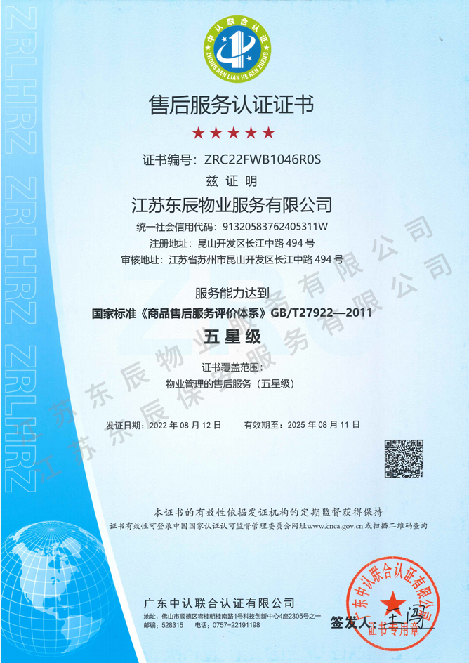江蘇東辰物業服務有限公司成立于2004年5月,2005年5月取得國家三級物業管理企業資質,2014年11月更進一步取得國家二級物業管理企業資質,注冊資金1000萬元。公司自成立之日起,即以“業主至上,服務第一”為宗旨開展各項物業服務活動,牢記沒有“最好”,只有“更好”,持續為業主提供全方面、高質量、標準化、及時性的物業服務。